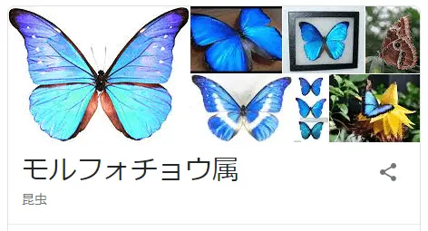 また、モルフォ蝶は世界一美しい蝶だと言われています(こんなかんじ↓)