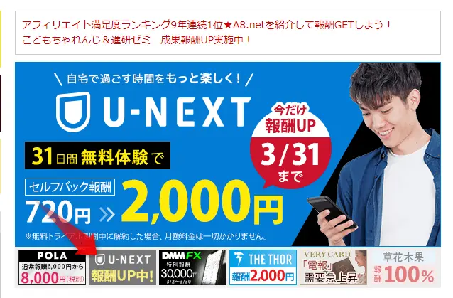 U-NEXTアフィリエイトがうざい?実はあなたも2000円稼げるよ!