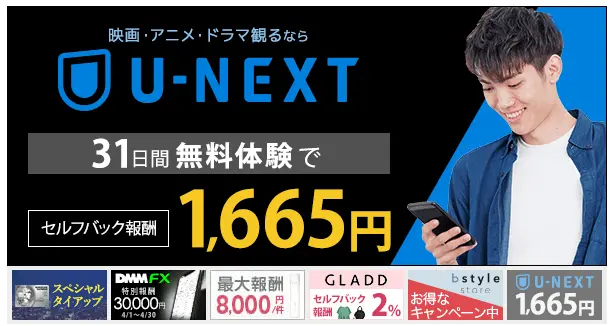 まだU-NEXTに登録したことがない人はセルフバックでサクっと稼いじゃいましょう。