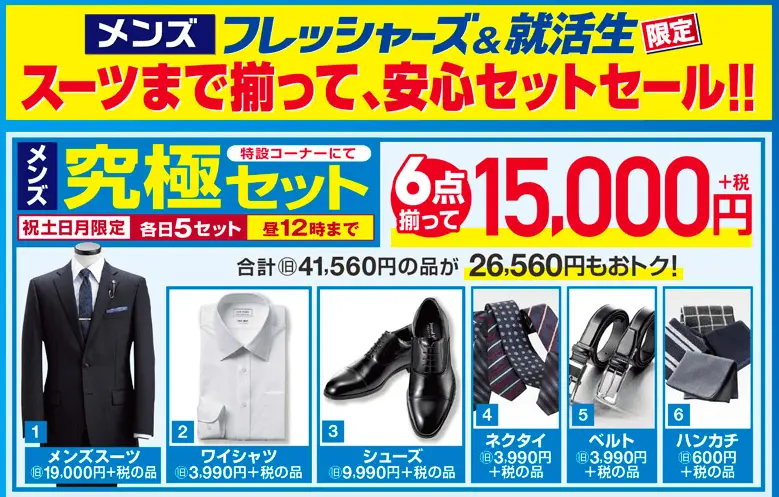 私も実際AOKIで購入したのですが、セットを15000円で買えました。
