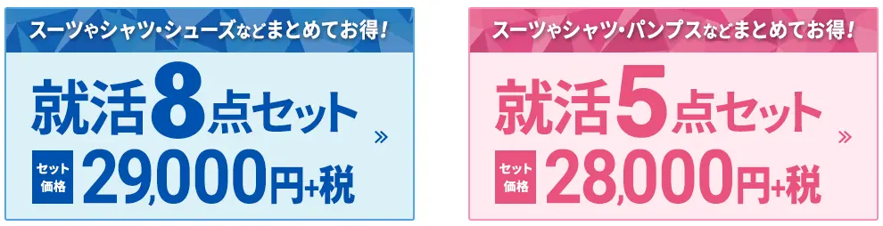 まずAOKIのホームページでリクルートスーツの情報をみると以下のようにセット価格が示されています。