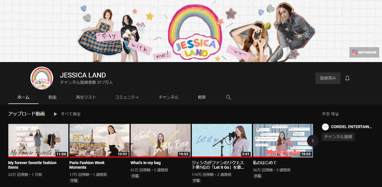ジェシカのYouTube公式VLOGで2020年2月から動画投稿が開始されています。