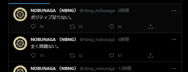 価格が暴落してる中、「ポジティブ足りない。」とか「全く問題ない。」など煽るようなツイートをしています。