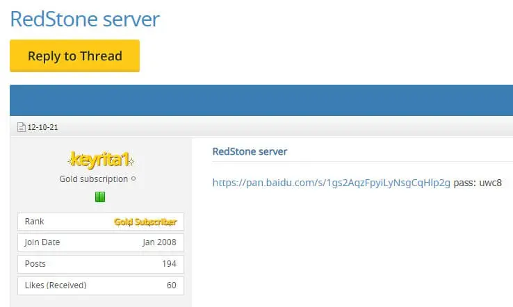 REDSTONEのサーバーファイルがリリースされたスレッド内で既にサーバー構築に成功した人がいます。