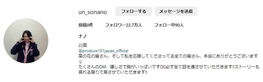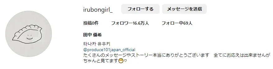 この4人はインスタでの投稿が0件で、プロフィールでのみメッセージを記載しています。