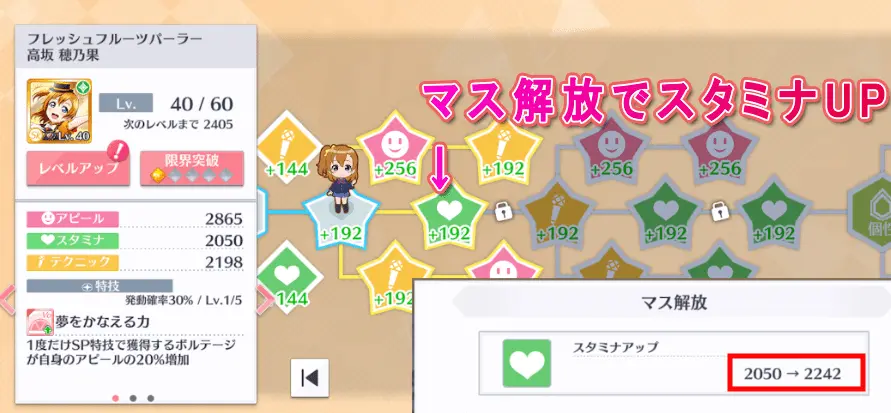 レベル上げしたらスタミナ上がりますがマス解放でも上げることができます。しかも効率いい!