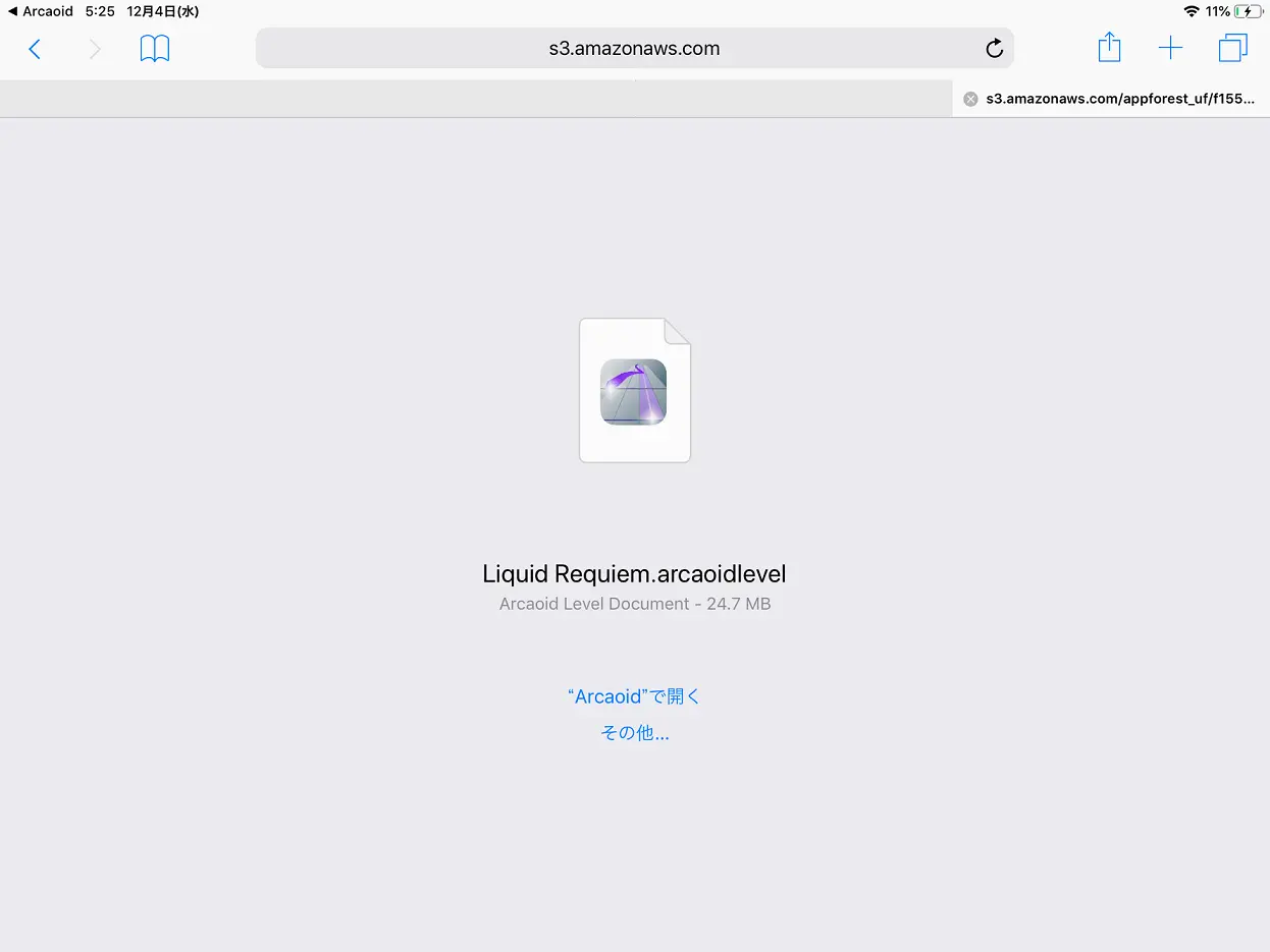 ダウンロードが終わるとこんなかんじのページになるので「Arcaoidで開く」をタップ