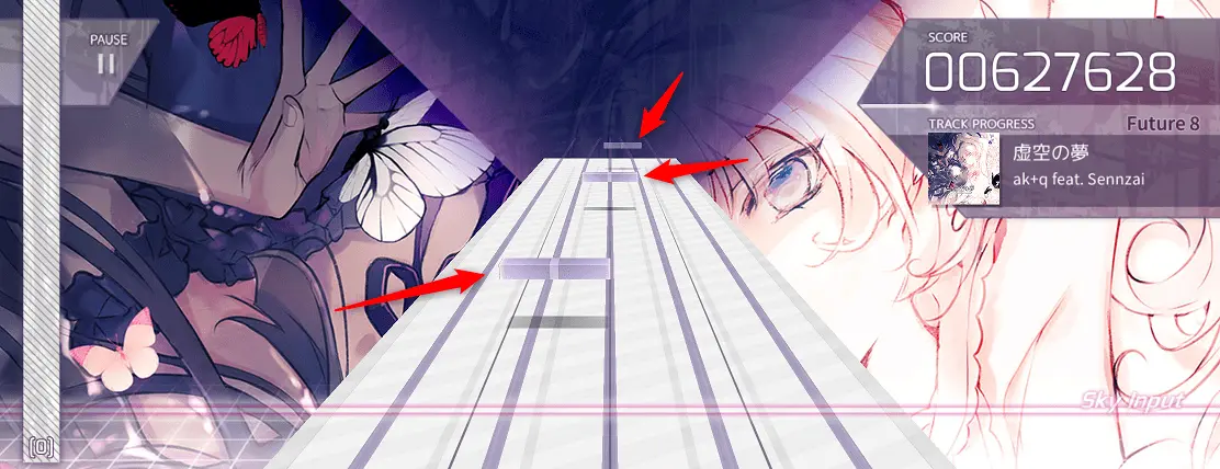 上のレーン(判定ライン)にのみスカイノーツが流れてくればまだ楽なのですが、そんな甘くはないのですよね・・・
