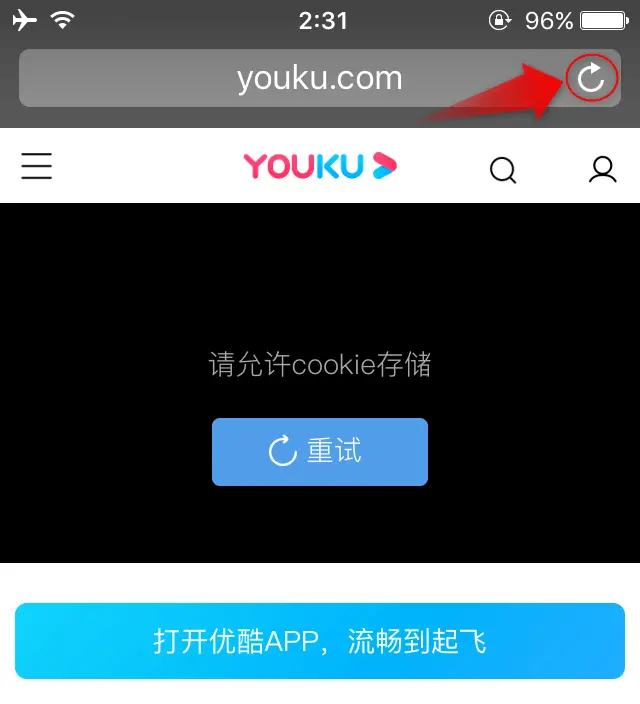 AdGuardが有効になったらSafariを起動し、Youkuで観たい動画のページを開きましょう。