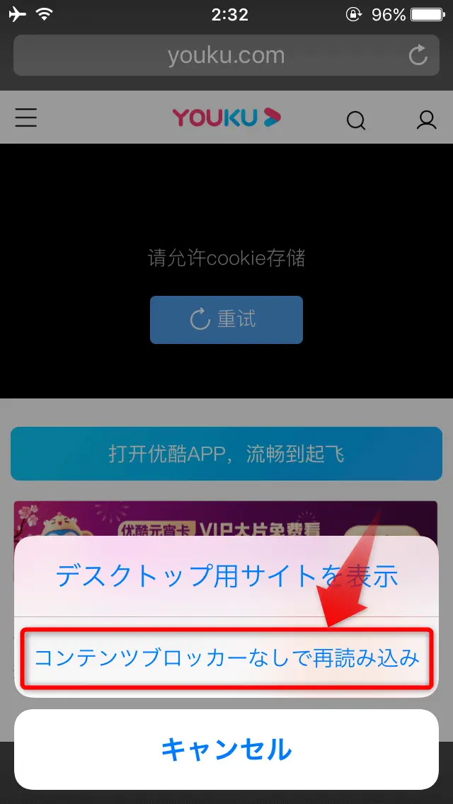 また、Youku公式アプリは使わずにブラウザでYoukuの動画を見ることとします。