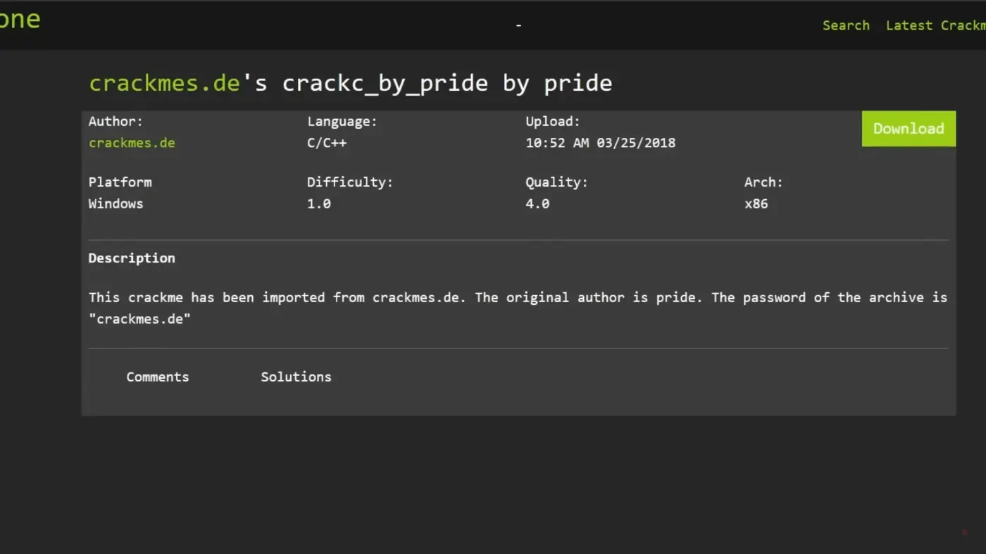 例えば、「PrideCrackMe」という、C/C++ で書かれた 32 ビットプログラムを例に説明します。このプログラムは、「x32dbg」というデバッガを使用して解析することができます。