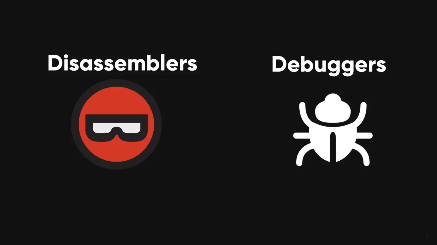 リバースエンジニアリングには、逆アセンブラやデバッガなどのツールが使用されます。逆アセンブラはマシンコードをアセンブリ言語に戻すことで、少しだけ読みやすくします。デバッガは、クラッカーがソフトウェアをステップ実行したり、任意の場所で一時停止したりして、内部で何が起こっているのかを確認できるようにします。
