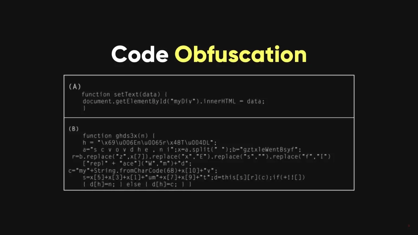コード難読化は、コードをスパゲッティのように複雑に見せることで、リバースエンジニアリングを困難にします。