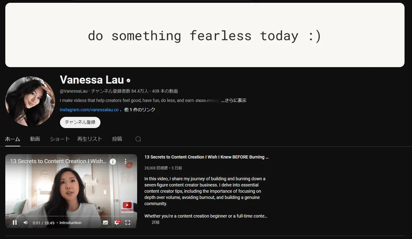 Vanessa Lauさんは登録者80万人を超える女性Youtuberです。